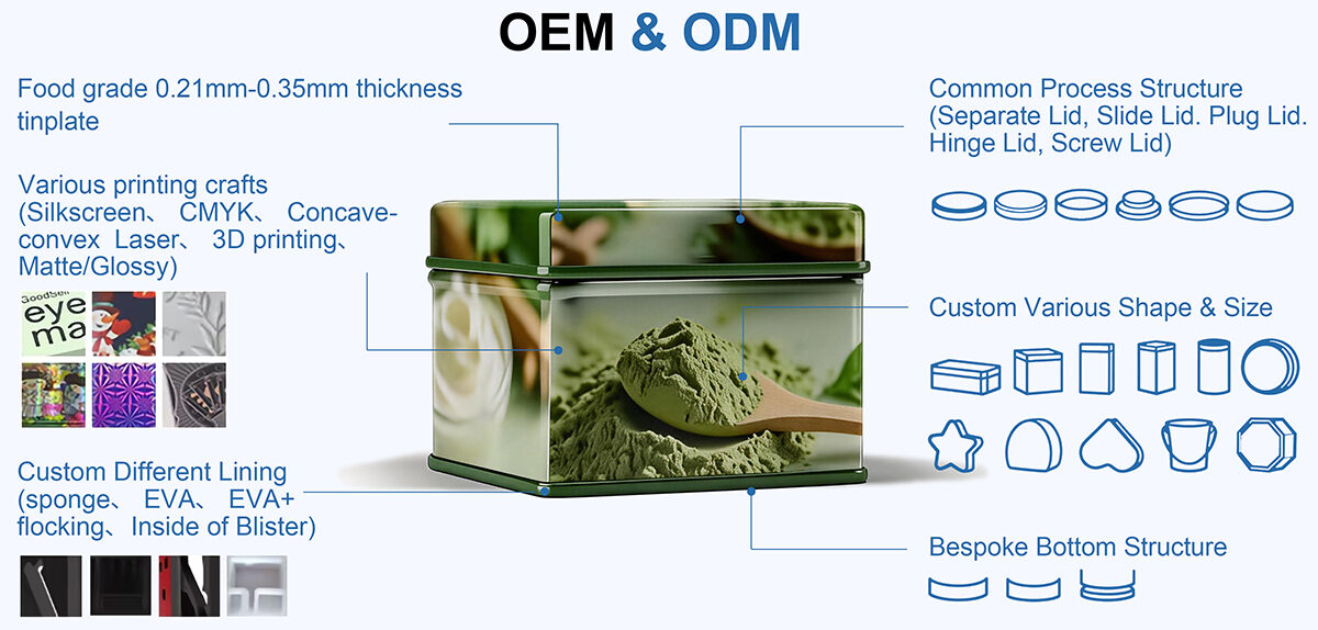 Enhance your brand with our premium tin boxes and metal containers, featuring smooth opening and secure sealing—perfect for luxury retail and gift packaging. We offer custom metal packaging solutions, including tin cans and metal boxes.