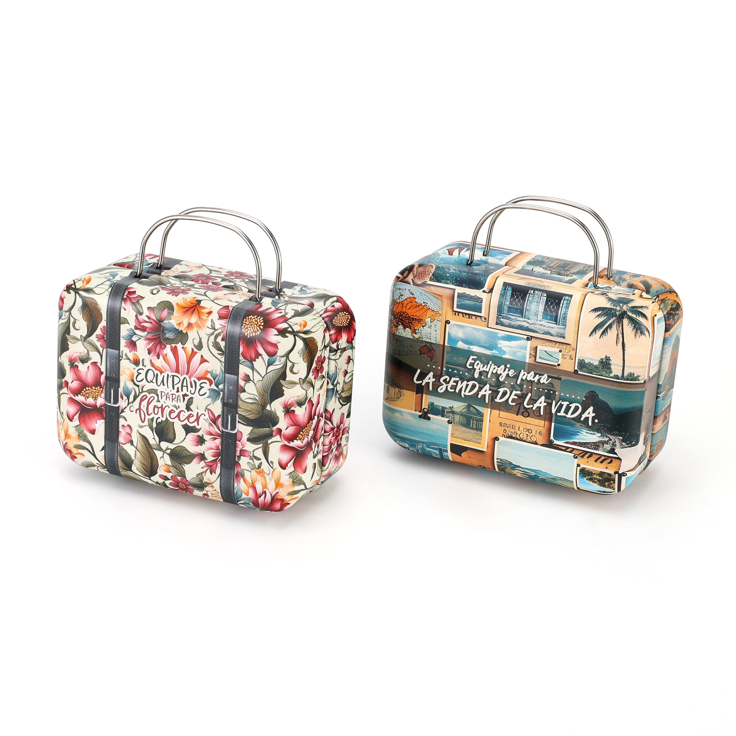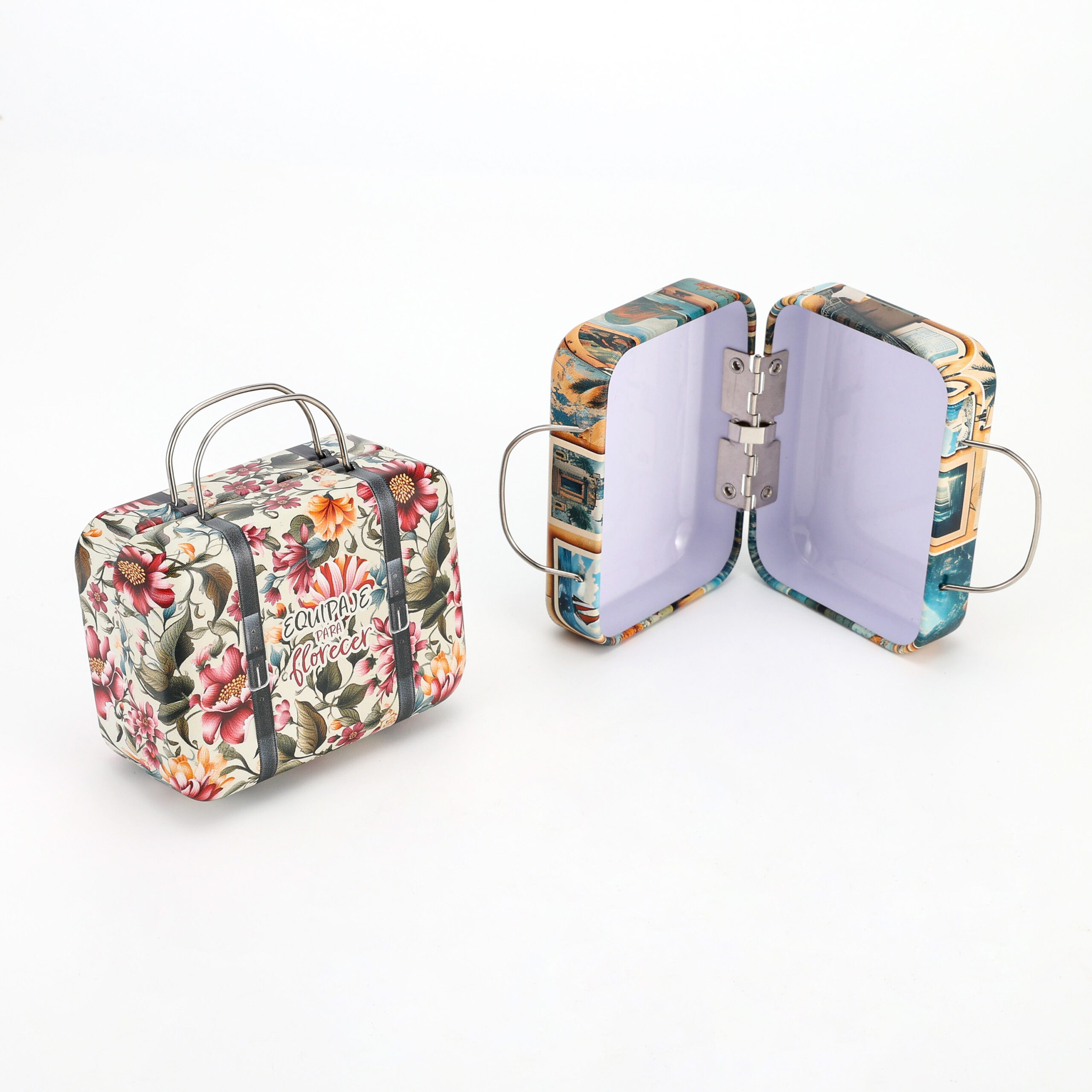 Wholesale Custom Tin Handle Cases Metal Suitcases Rectangle Gifts Fully Printed Inner Rolled Edge Cute Hinges Metal Tin Boxes