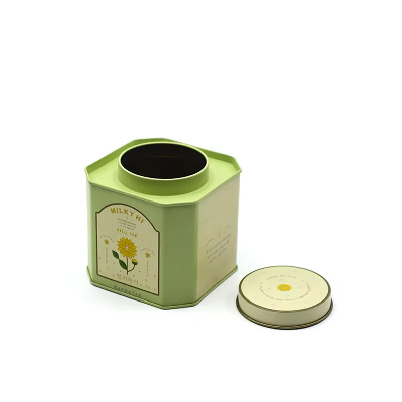 Customized Large Matte Green Metal Container Octagonal Tea Sealed Can Packaging Food-Grade Tin Can with Lid