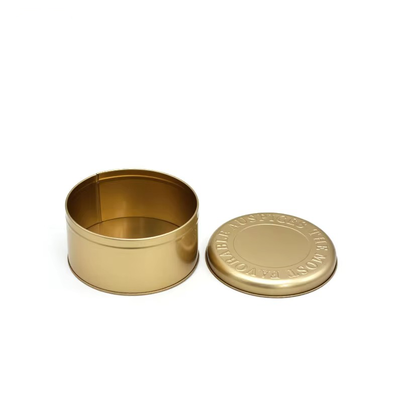 Reusable Round Cookie Tin Can Custom Food Grade Metal Can Gold Embossed Biscuit Dream Cake Can Tin Box Brass Tin Container
