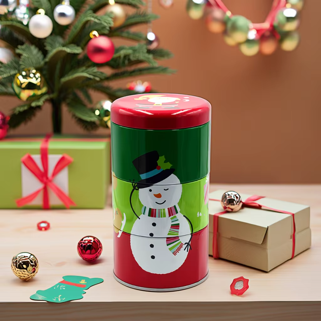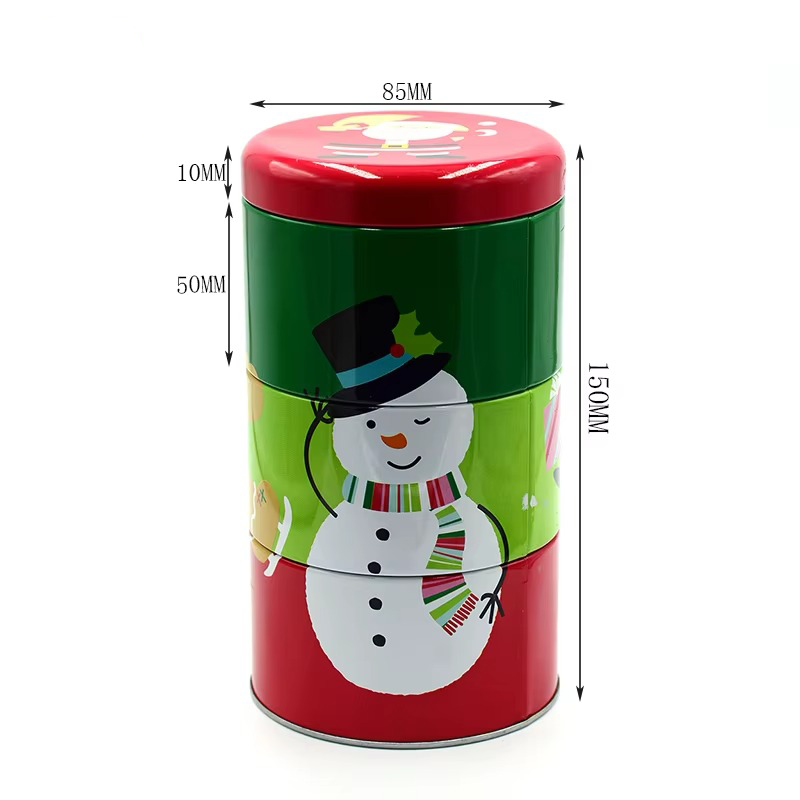 Factory Creative Design Metal Combination Three-layer Tin Can Christmas Style Food Container Multi-layer Combination Storage Tin