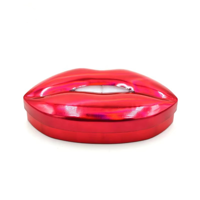 Custom-printed empty metal lip-shaped tin box for cosmetics and gifts. | ||||||