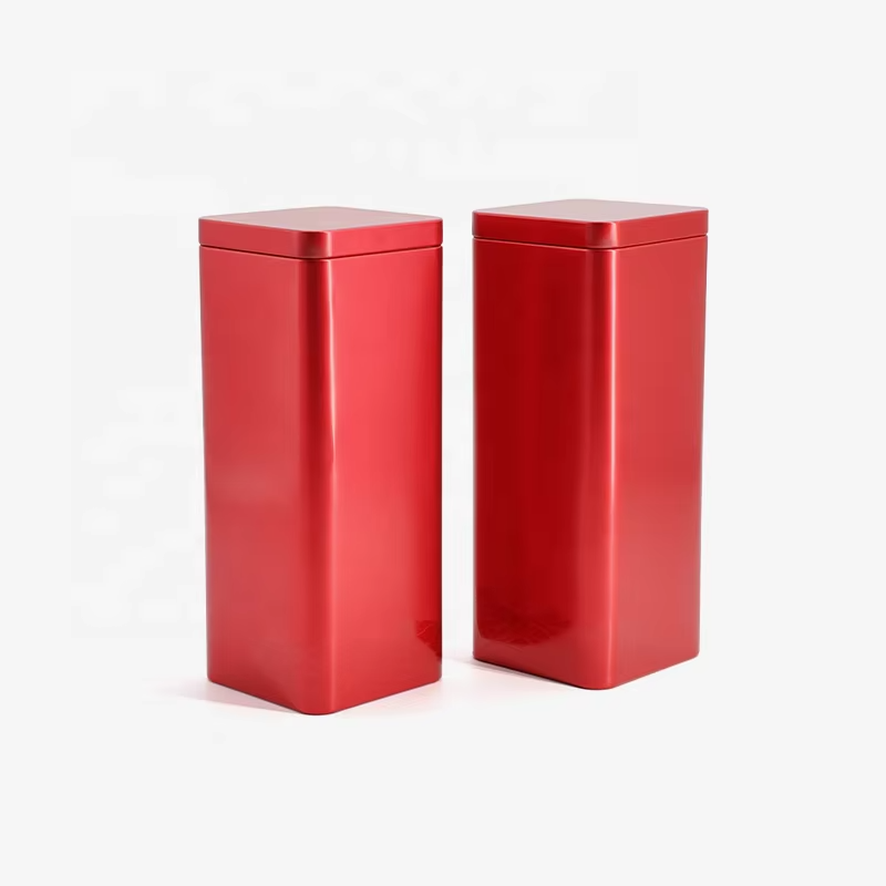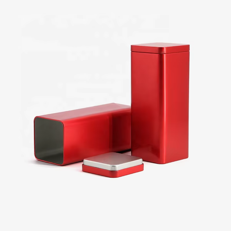 Custom square Tin Boxes Wholesale Metal Tin Cans Tea and Candy Containers Tin Tins for Cookies and Coffee Red Metal Tin Boxes | ||||||