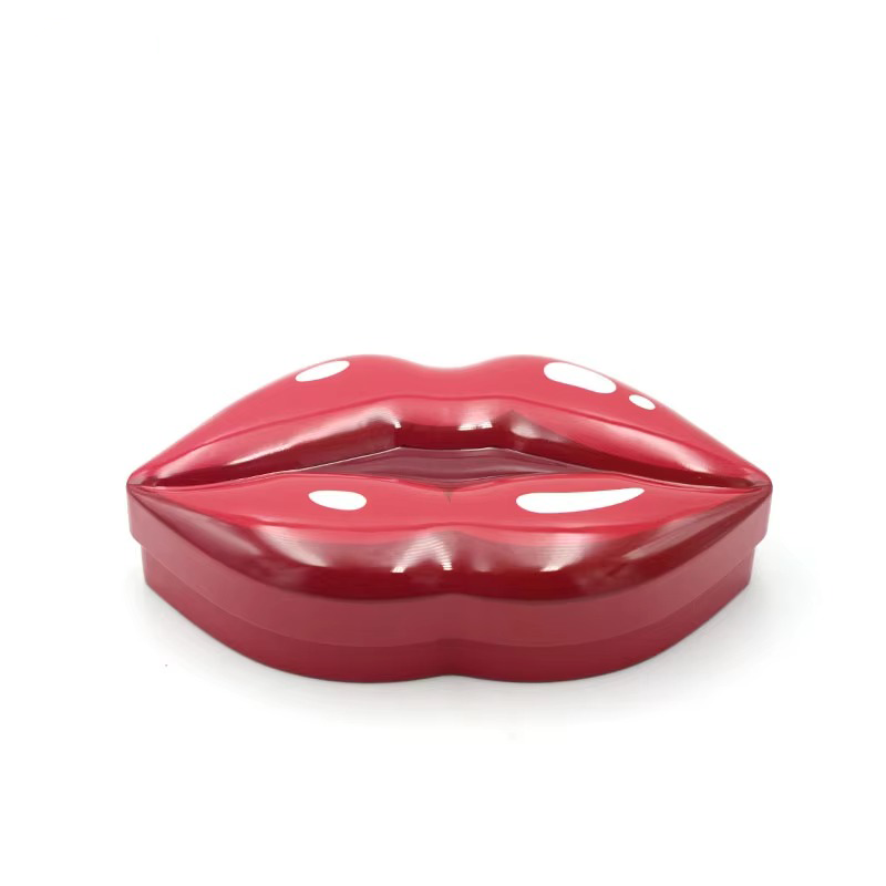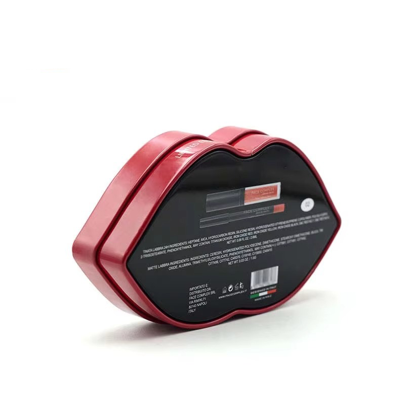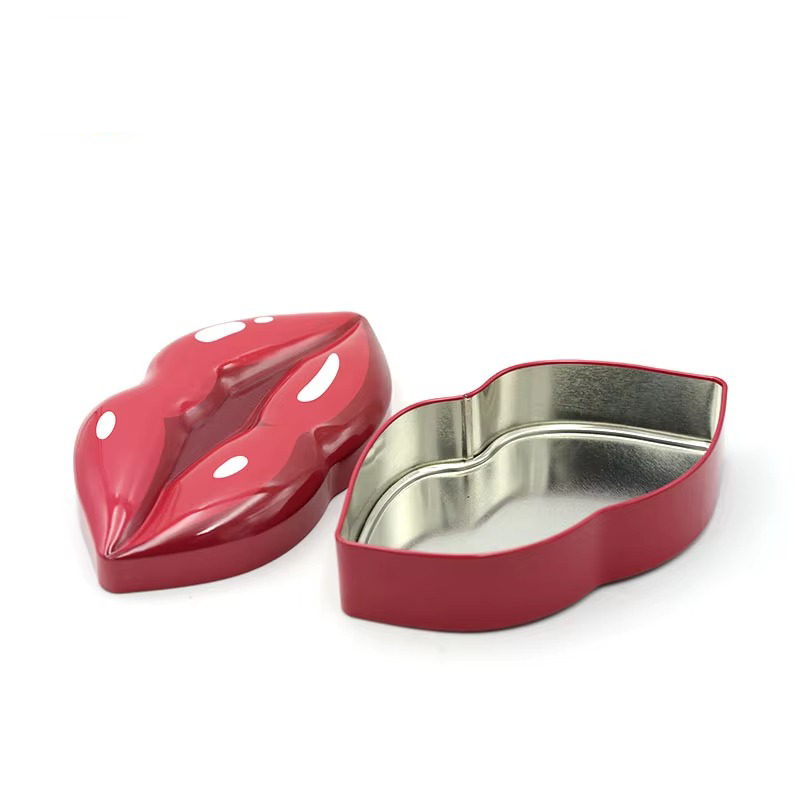 Custom-printed empty metal lip-shaped tin box for cosmetics and gifts. | ||||||