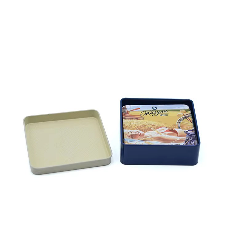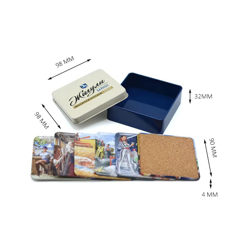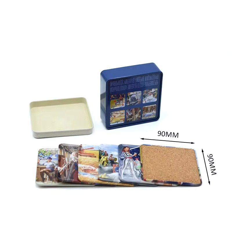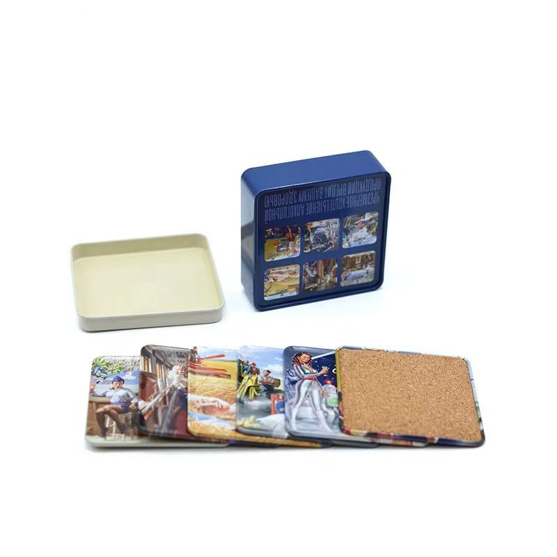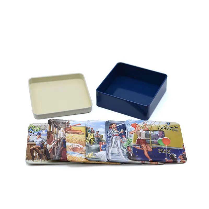 Factory Custom Creative Dquare Gift Metal coaster Set Custom Printing Recyclable Material Reusable Metal Gift Set Tin Box Tinplate is one of the most recyclable materials Keeping consumer preferences and concerns about health and environment protection in mind | ||||||