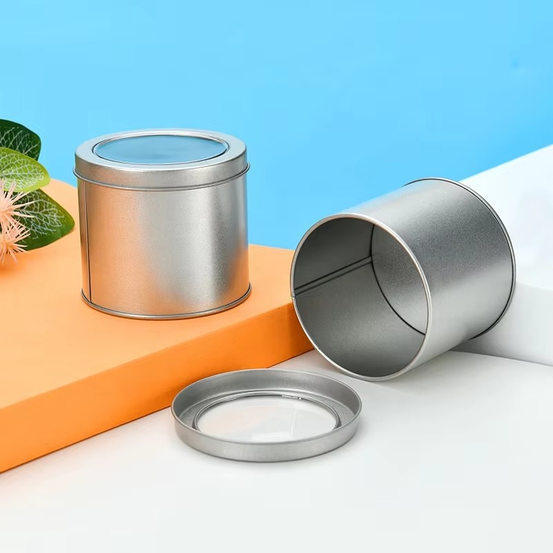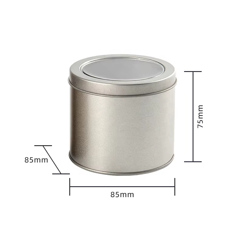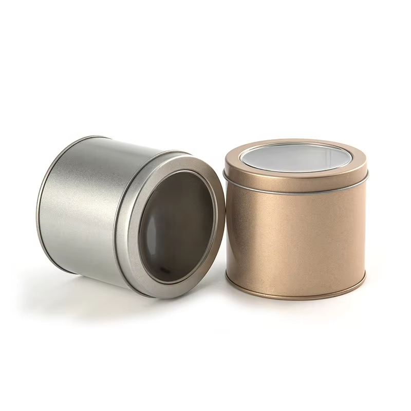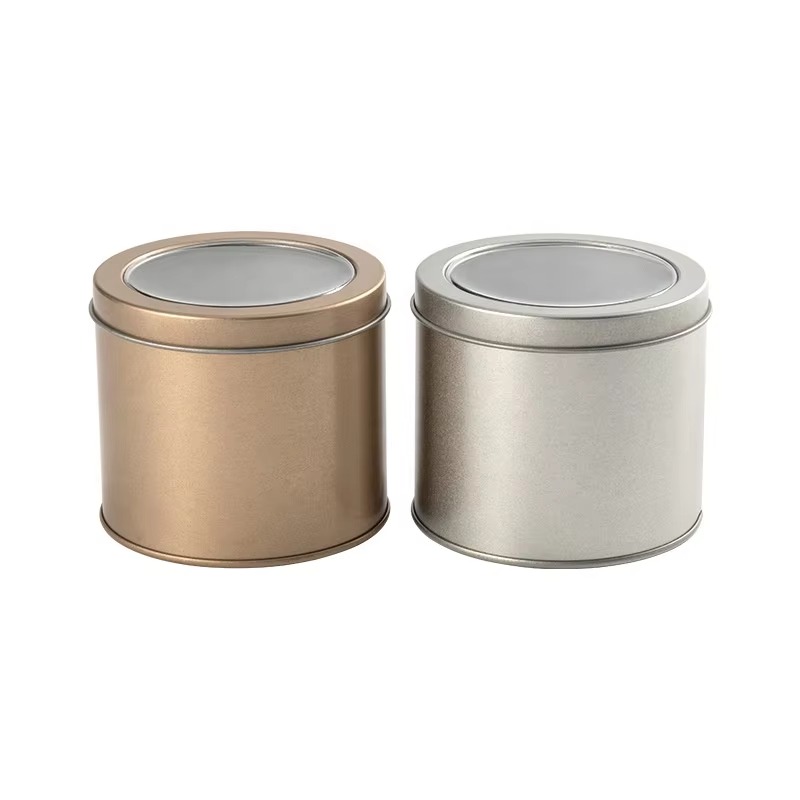 Factory-custom Printed and Labeled Round Metal Tin for Tea Candy Biscuit Cake and Candle Packaging with a Transparent Window Lid