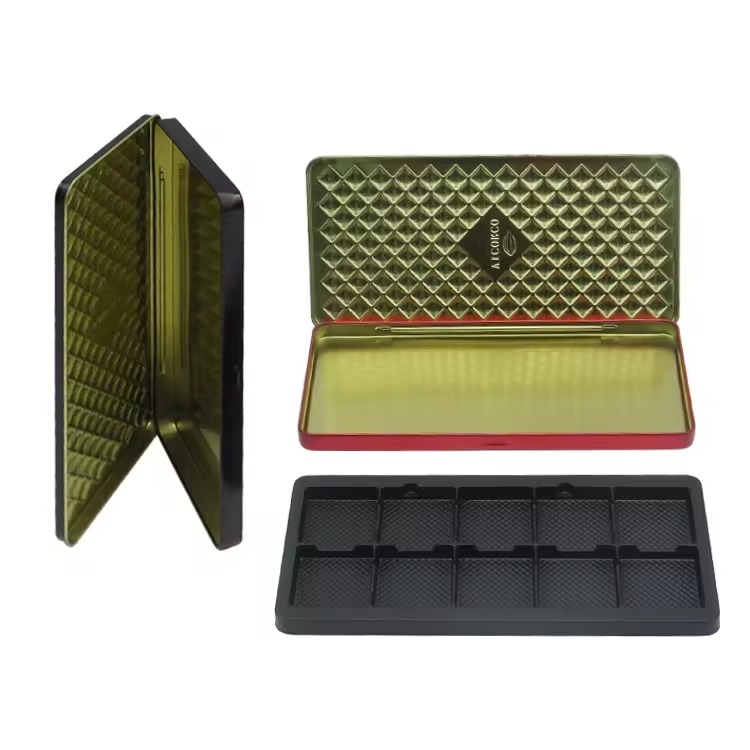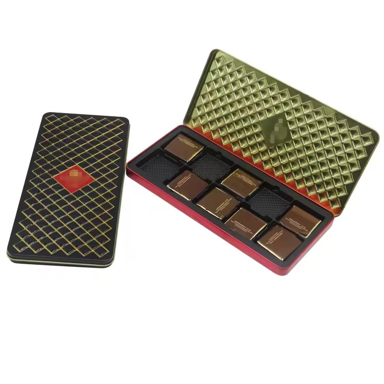 Factory Wholesale Custom Embossed Color Printing Tins With Insert Food Grade Chocolate Rectangle Tin Box With Hinge Lid | ||||||