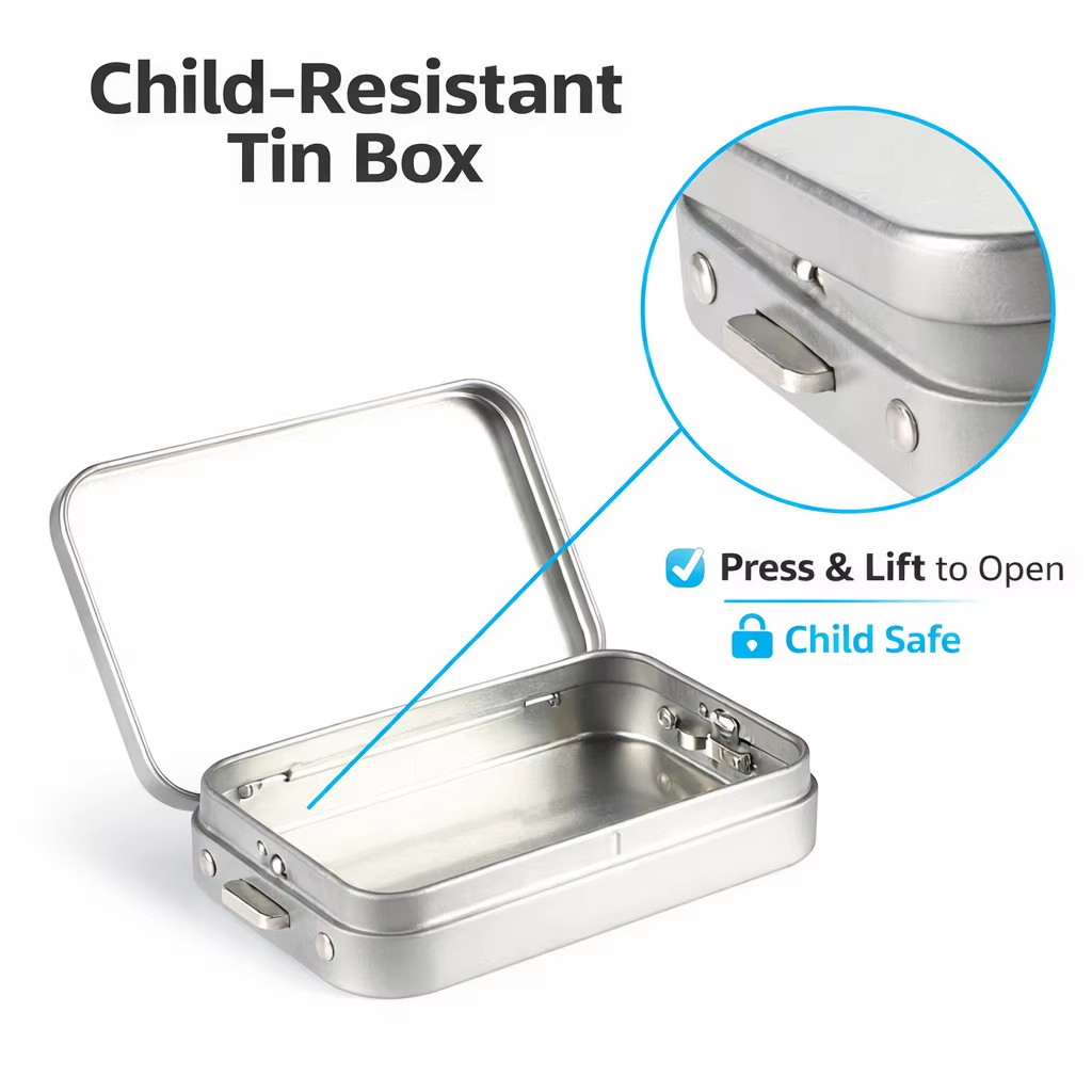 | Tinplate material advantage | Customizable Portable Metal Tobacco Tinplate Box with Child Lock Food Grade Custom Design Safety Lock Suitable for Children Tinplate is one of the most recyclable materials Keeping consumer preferences and concerns about health and environment protection in mind |