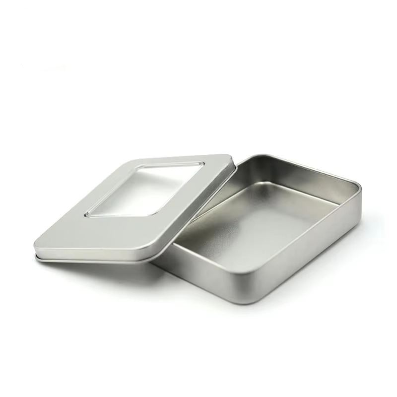 Factory Wholesale square Silver Tin Box with Transparent PVC Window Jewelry USB Fidget Spinner Packaging High-end Metal Tin Box