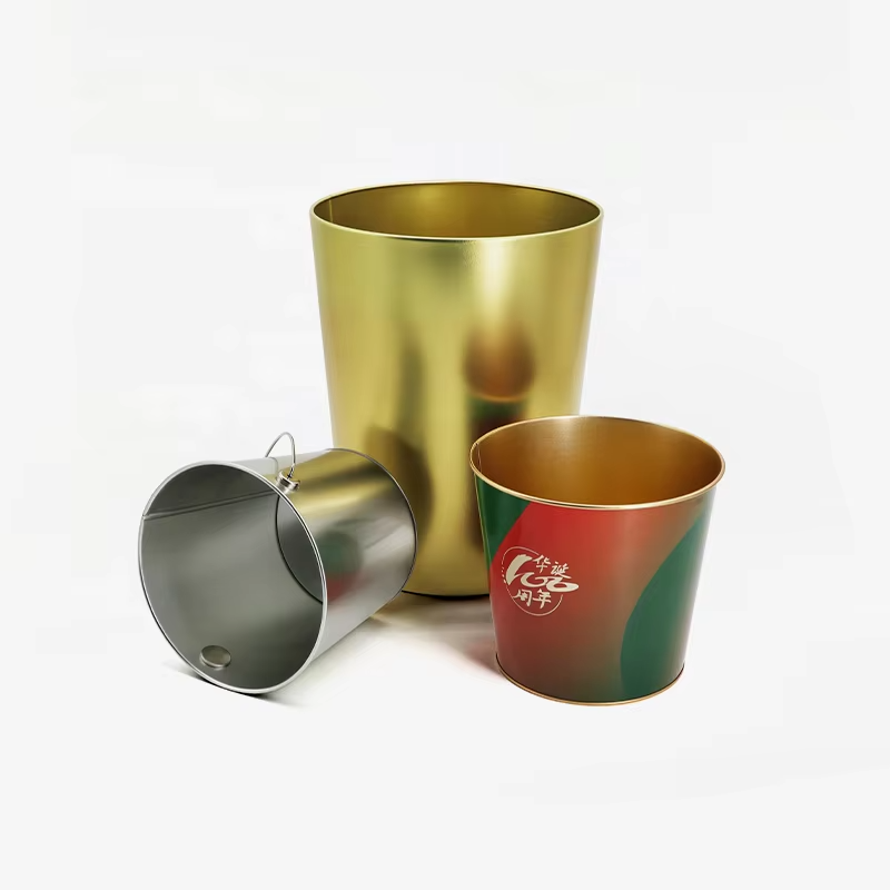 Wholesale Custom Color Printing Tins Container Food Grade Candy Storage Golden Tin Can With Handle Metal Bucket | ||||||