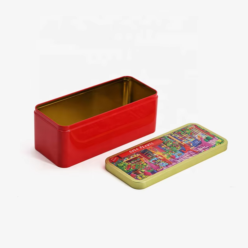Wholesale Custom Tinplate Cookies Boxes Metal Box Food-grade Pattern Rectangular Round Corner Storage Boxes Lid and Bottom Tin Box