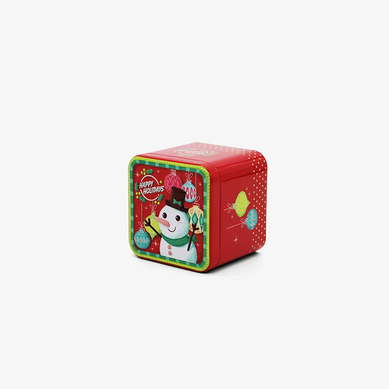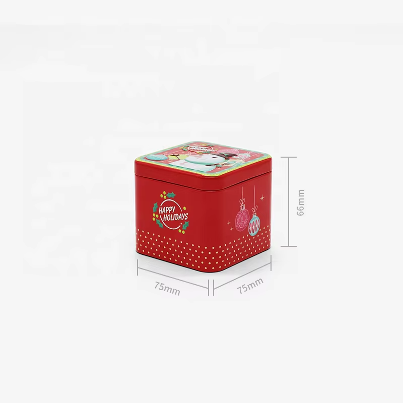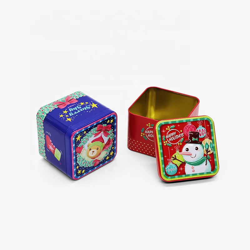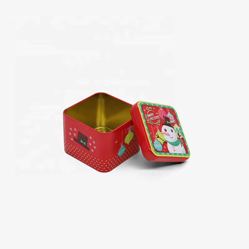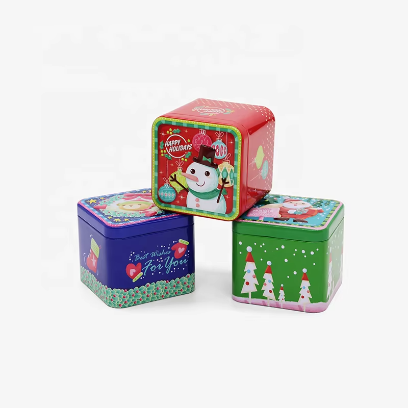 Custom printed and embossed square food-grade retro chocolate tins, Christmas logo, Christmas cookie and cake tins | ||||||